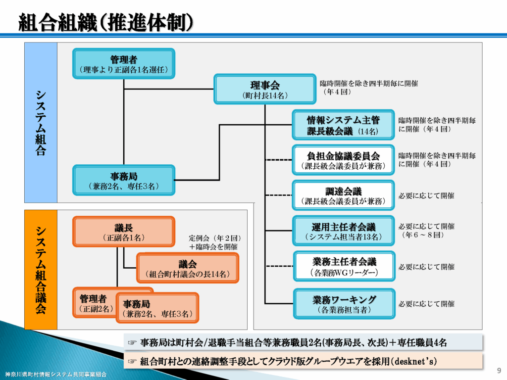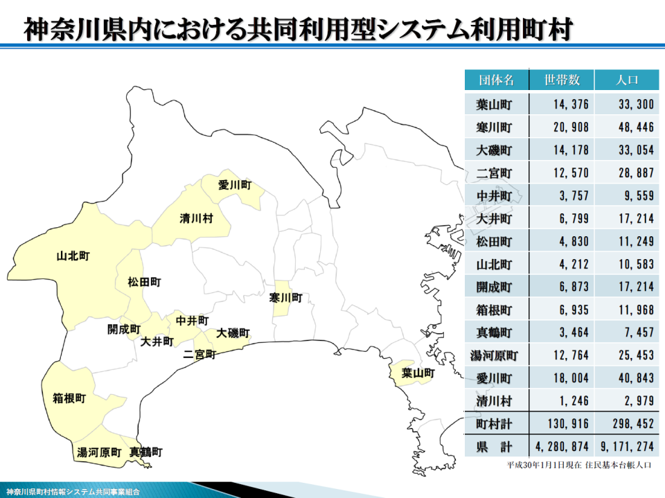 平成22年11月5日協議会において、情報システムの共同化推進組織として一部事務組合である「神奈川県町村情報システム共同事業組合」の設立に合意